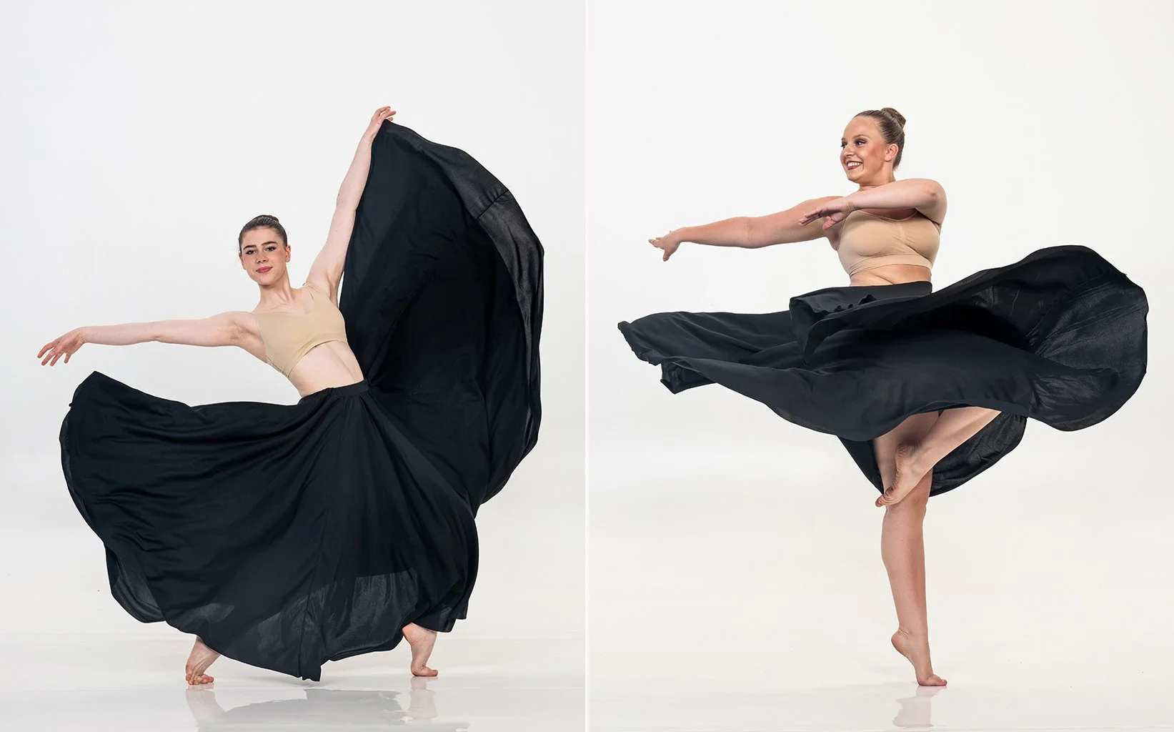 We believe dance portraits are unique and should be approached differently than other volume portraits for schools or sports leagues. Dancers should be photographed leaping, turning, posing - in dance positions. And their portraits should be taken by an experienced dance photographer with the knowledge and skills to bring our their best looks. Someone who catch their leaps in their peak position on the first try, almost every time.